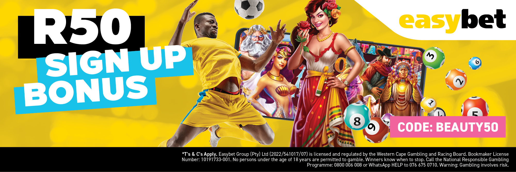 New to EasyBet? You’re in for a treat! As a new EasyBet player, you’ll get a generous no-deposit bonus package just for signing up! It’s a risk-free deal that the casino extends to you right from the start. Use the exclusive bonus code BOOST50 for a R50 Free Bet you can use risk-free! No deposit is required!